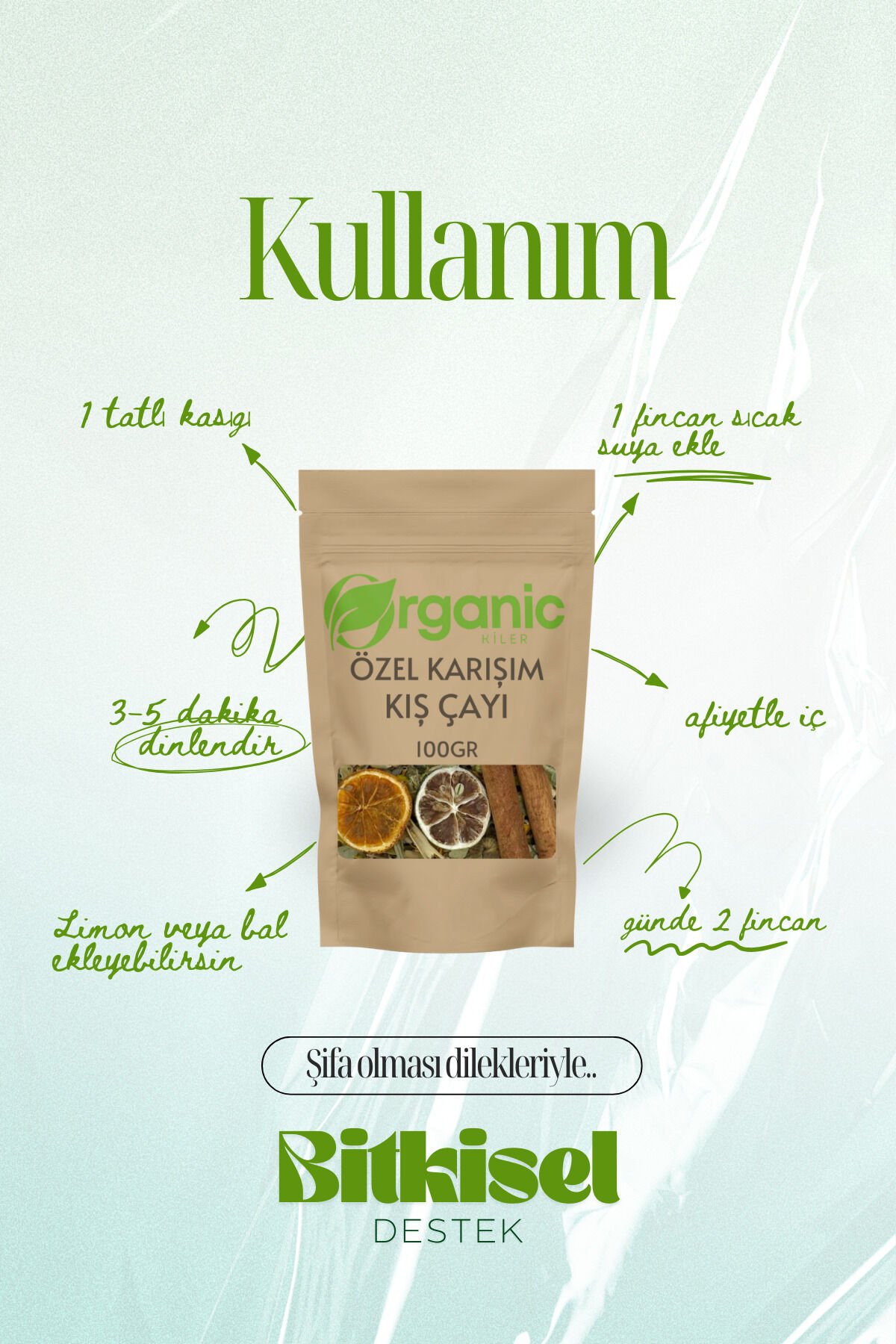 - Bir yemek kaşığı kurutulmuş Atom Kış Çayı karışımını sıcak suda 8-10 dakika demleyerek tüketebilirsiniz.